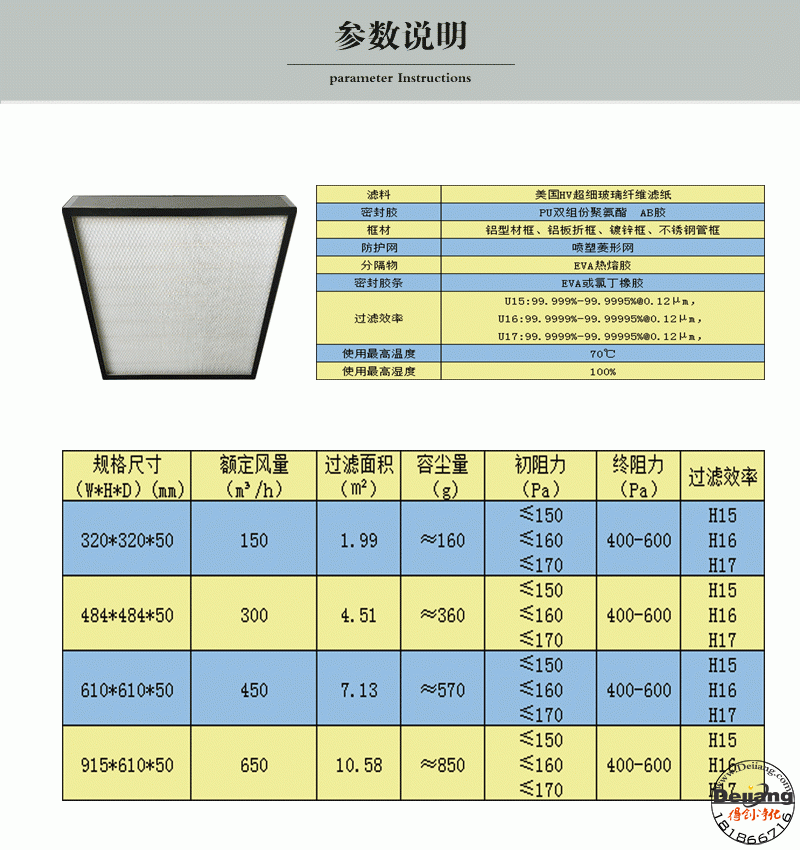 2.濾料采用美國HV超細(xì)玻璃纖維濾紙制成,以熱熔膠為分 隔。