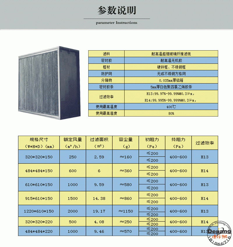 外形尺寸:610*610*150(mm) 濾料類型:玻纖