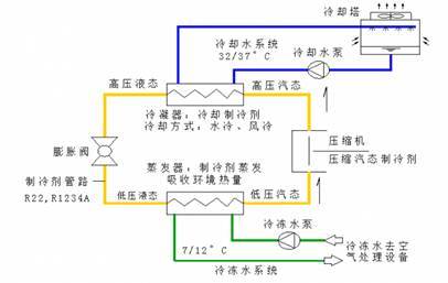(2)冷熱水(媒介)系統(tǒng):冷熱源(冷水機(jī)組、鍋爐)-冷熱輸送分配(水泵或制冷劑管道)-空氣處理設(shè)備