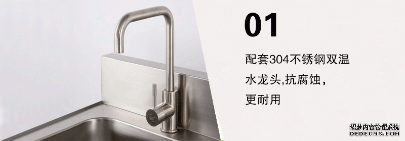 洗手槽采用SUS304不銹鋼雙層制作,中間特殊靜音處理。槽身以人體工程學設計,洗手時水花不會濺在身上。鵝頸型水龍頭,光控感應式出水,安全可靠。配電加熱器豪華燈鏡裝飾罩。
