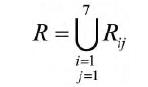 4 9 條規(guī)則可以得到 4 9 個(gè)模糊關(guān)系矩陣 Ri j(i = 1 ,2 ,…,7 ;j = 1 ,2 ,…,7 )。這些規(guī)則沒有先后之分,取“also”連接,則總的模糊關(guān)系求并運(yùn)算: