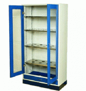 說明:上下雙開門,上下門內(nèi)各配2塊活動層板。采用1.0mm金屬板機壓成型制作,表面粉末靜電噴涂??蛇x配透孔為φ50mm、