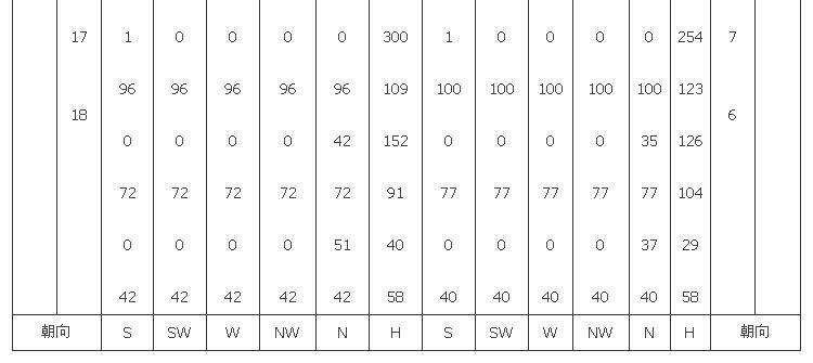 2 冬季日照率小于35%的地區(qū),東南、西南和南向的修正率,宜采用―10%~0,東、西向可不修正。