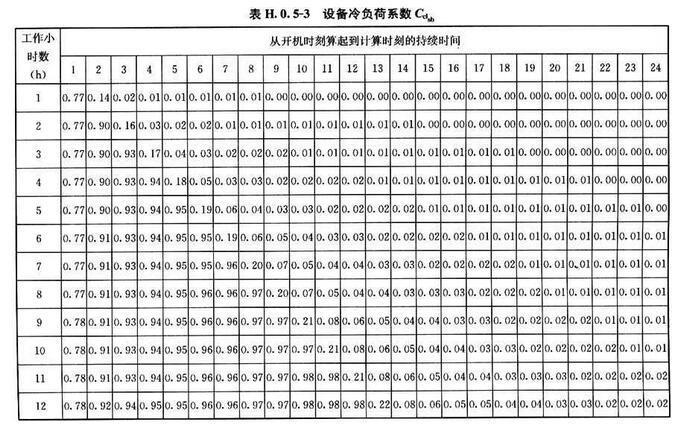 附錄H 夏季空凋冷負(fù)荷簡化計算方法計算系數(shù)表