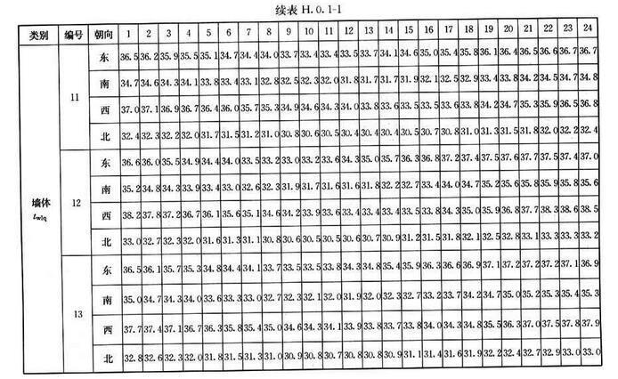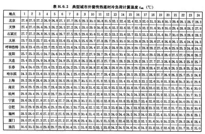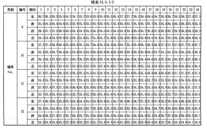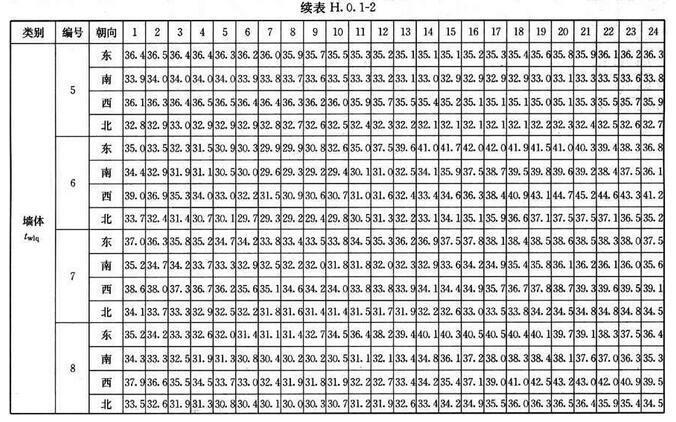 H.0.2 外窗傳熱逐時冷負(fù)荷計算溫度twlc,可按表H.0.2采用。