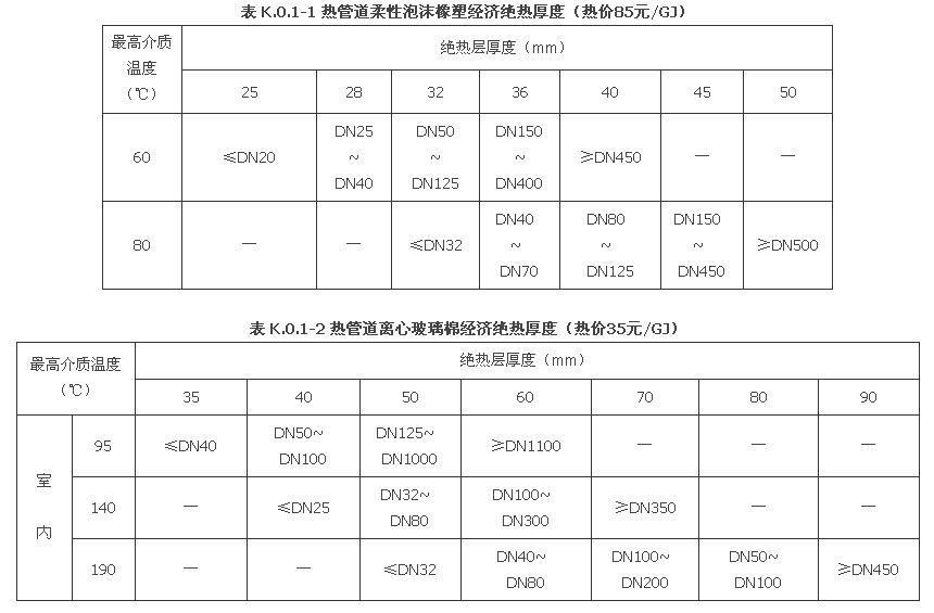 K.0.1 空調(diào)設(shè)備與管道保溫厚度可按表K.0.1-1~表K.0.1-3選用。