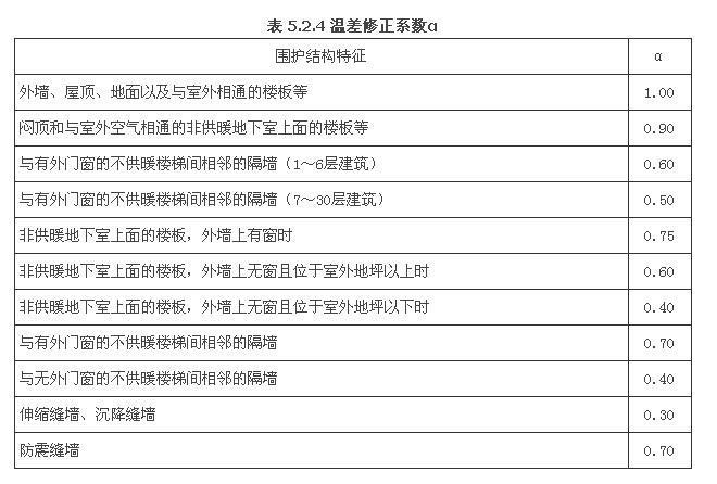 α――圍護(hù)結(jié)構(gòu)溫差修正系數(shù),按本規(guī)范表5.2.4采用;