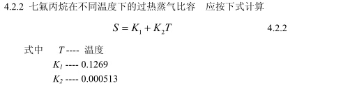 第4.2.2條 七氟丙烷在不同溫度下的過熱蒸氣比容,應(yīng)按下式計算: