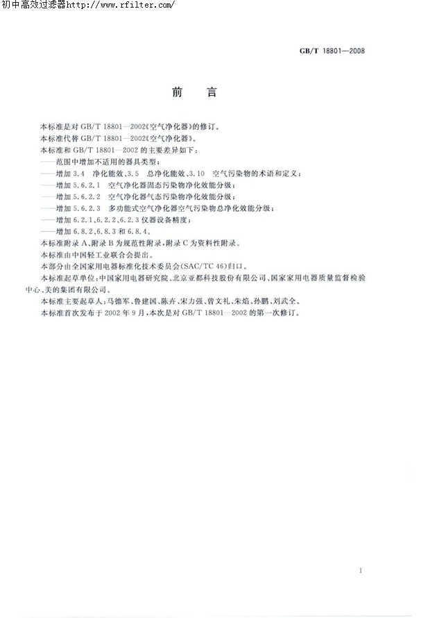 本標(biāo)準(zhǔn)是對GB/T18801-2002《空氣凈化器》的修訂。