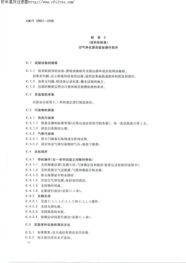 附錄C (資料性附錄)空氣凈化器實驗室操作程序14