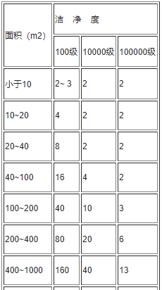 b. 測(cè)定潔凈度的最小采樣量按下表: