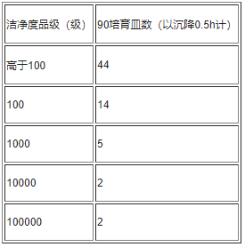 沉降菌測(cè)量至少取樣等級(jí)表