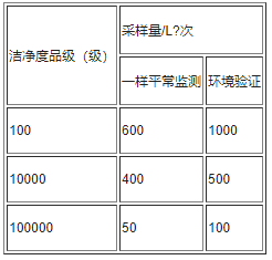浮游菌檢測(cè)法最少取樣量應(yīng)按差別潔凈度等級(jí)等級(jí)來(lái)明確。見下表