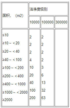 憑據(jù)凈化室總面積,規(guī)定至少取樣點(diǎn)見下表: