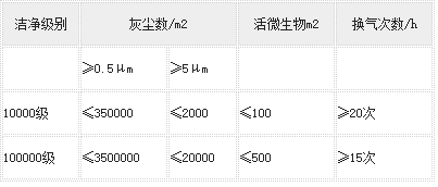注:①換氣次數(shù)適用樓高低于4.0m的潔凈室。