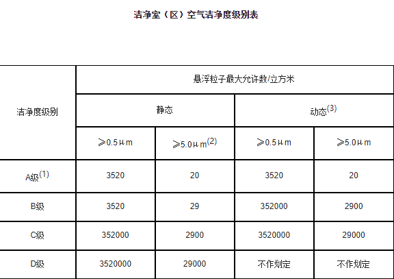 潔凈室(區(qū))氣體潔凈度等級(jí)表
