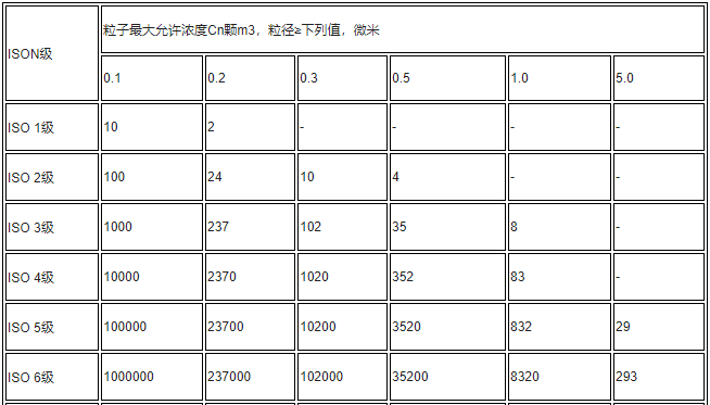 ISO5級(jí);靜態(tài)數(shù)據(jù);給出粒度0.5μm(3520顆粒/m3);5.0μm(29顆粒/m3)。