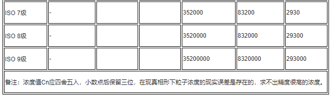 凈化車間和潔凈區(qū)均按一項(xiàng)指標(biāo)值區(qū)劃等級(jí)―一定粒度顆粒的較大允許濃度(每1m3空氣中的微粒數(shù))。