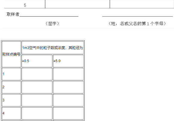 6)將取樣數(shù)據(jù)信息填寫按諸多給出粒度統(tǒng)計(jì)分析的顆粒統(tǒng)計(jì)分析記錄表內(nèi)(適合接受無(wú)籌算機(jī)軟件的粒子計(jì)數(shù)器的場(chǎng)合下);